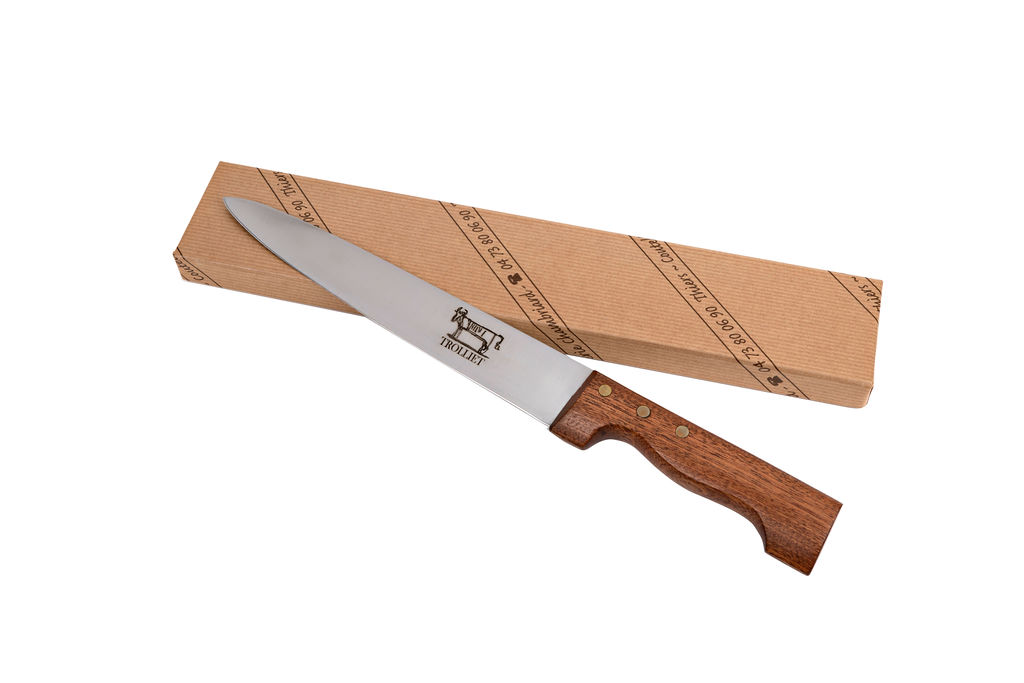 Couteau à découper de 23 cm. Logo Boucherie Trolliet sur la lame.