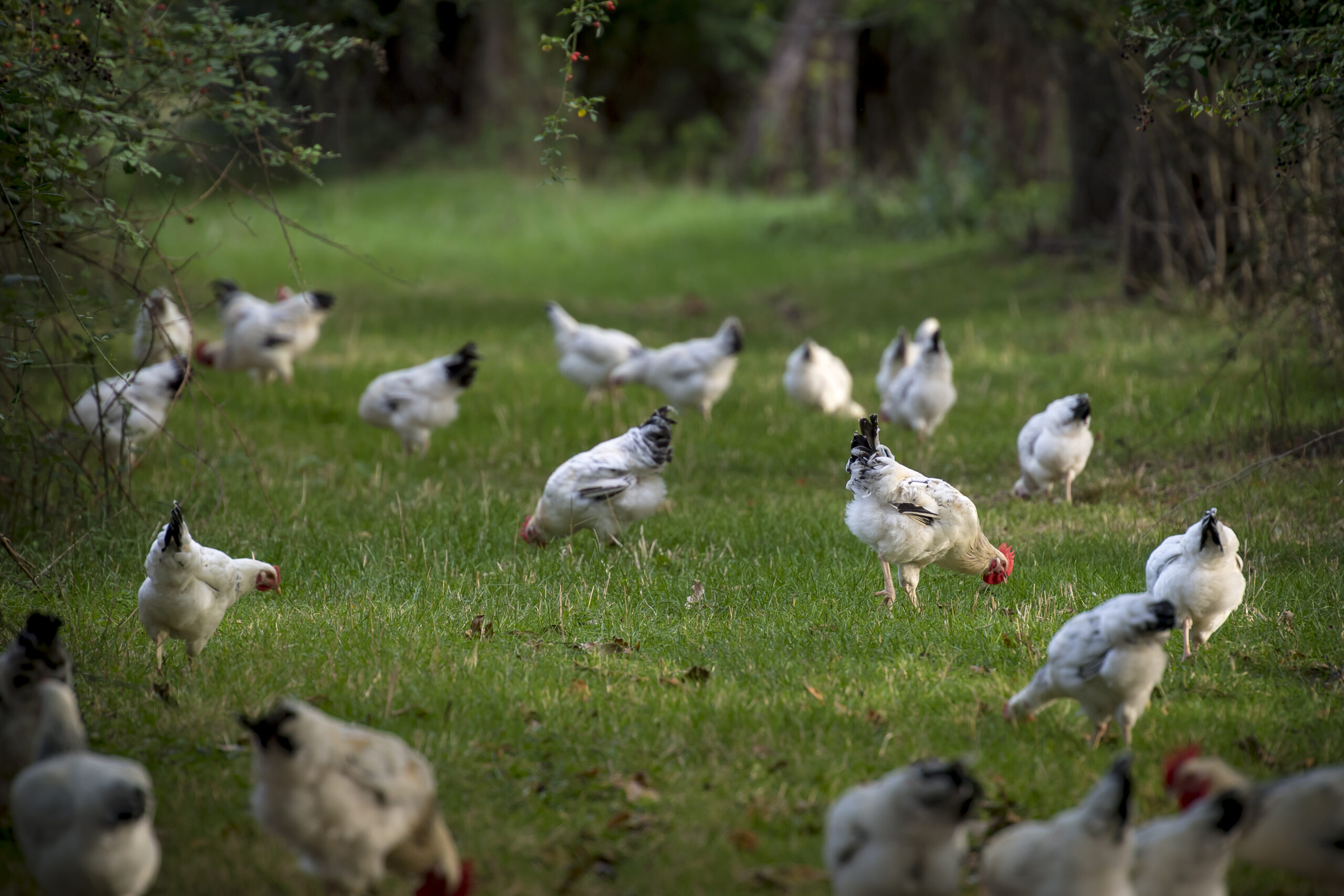 Du lever du soleil au crépuscule, le Poulet du Bourbonnais gambade, en toute liberté, sur les riches terres bourbonnaises. Toute la journée, il gratte la terre à la recherche de vers, fourmis ou autres insectes. Quand le soleil parait, il aime se reposer à l’ombre d’un arbre, à proximité de ses congénères. Le Poulet du Bourbonnais a à sa disposition, la journée pour se reposer et la nuit pour dormir, de petits poulaillers en bois sur pilotis. Ils sont dotés d’un plancher en bois améliorant l’isolation et donc le confort des poulets.